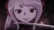 Enfrentando nuevamente a su amo, en la segunda reunión junto a los otros Guardianes, muestra a Ainz su sujetador hecho por un maestro herrero con dos de las monedas de oro que le otorgó.